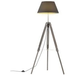 Lampadaire à Trépied Gris Et Noir Bois De Teck Massif 141 Cm VidaXL