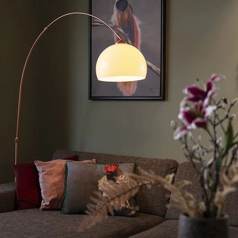 QAZQA Lampe à arc moderne en cuivre avec abat-jour blanc – ARC Basic