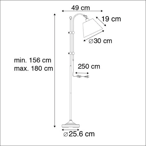 Cette lampe de sol est vraiment un bijou. Le luminaire est en bronze et est fini avec un abat-jour blanc qui donne à cette lampe un look classique. Aussi la conception en acier et l’abat-jour en tissu donnent à cette lampe de plancher un style et une sensation classiques. La lampe a une hauteur réglable d’au moins 156 cm à un maximum de 180 cm et a un câble de 250 cm. Le montage de l’abat-jour a un bouton de marche/arrêt qui rend la lampe facile à utiliser. Une source de lumière E27 doit être commandée séparément. Un bijou classique qui donne à votre espace un style supplémentaire.