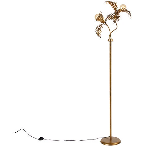 QAZQA Lampadaire vintage doré à 2 lumières – Botanica