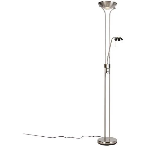 QAZQA Lampadaire en acier avec lampe de lecture avec LED et dimmer – Diva 2