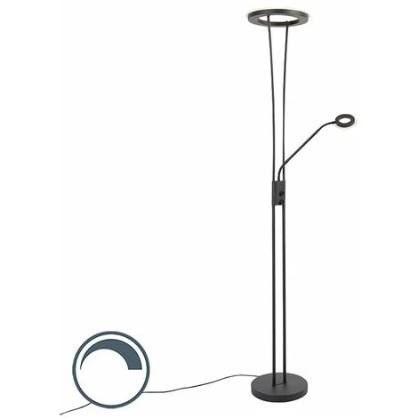 QAZQA Lampadaire moderne noir avec LED et bras de lecture – Divine
