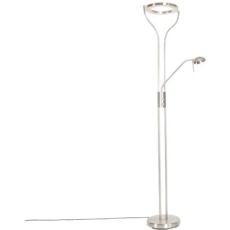 QAZQA Lampadaire moderne en acier avec bras de lecture avec LED et variateur – Divo