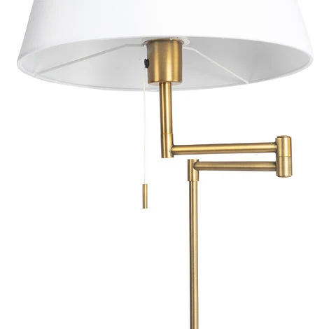 QAZQA Lampadaire bronze avec abat-jour blanc et bras réglable – Ladas Deluxe