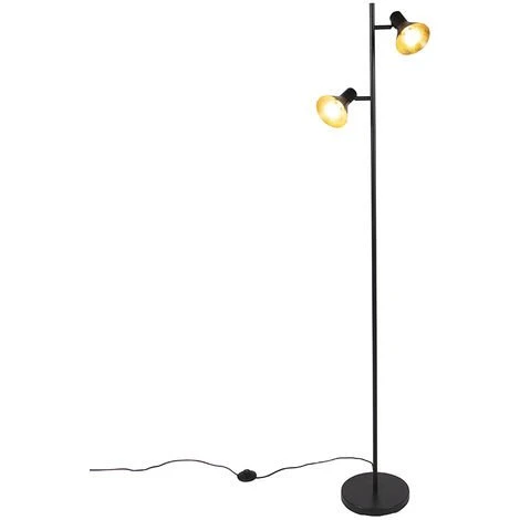 QAZQA Lampadaire moderne noir avec or 2 lumières – Magno