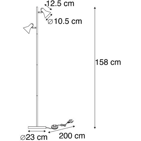 La lampe a une hauteur de 158 cm. La base a un diamètre de 23 cm. Un câble est également fourni (200 cm); super pratique!