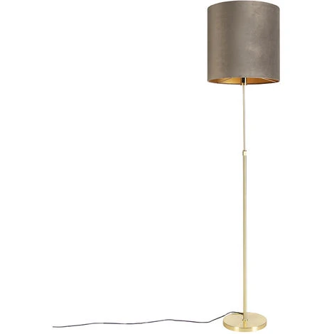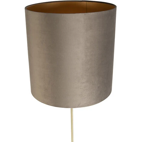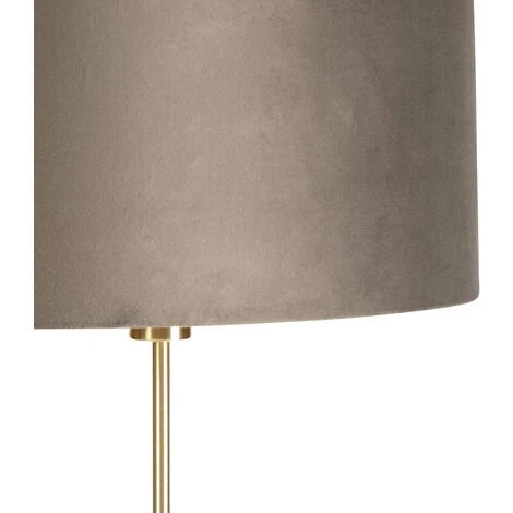 QAZQA Lampadaire or / laiton avec abat-jour en velours taupe 40/40 cm – Parte