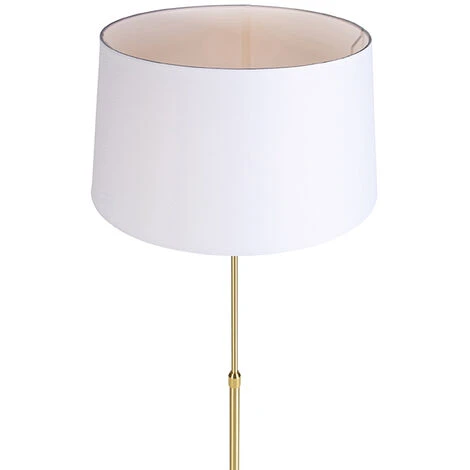QAZQA Lampadaire or / laiton avec abat-jour en lin blanc 45 cm – Parte