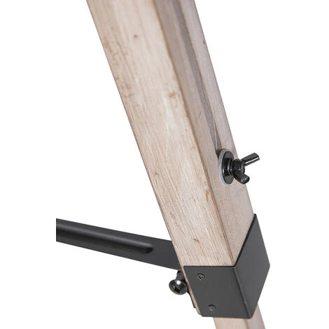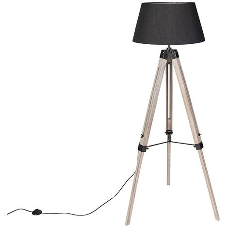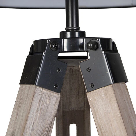 QAZQA Lampadaire industriel sur trépied en bois avec capot noir – Rio