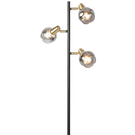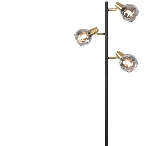 QAZQA Lampadaire art déco noir et or avec verre fumé 3 lumières – Vidro