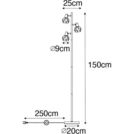 L’équilibre parfait entre subtil et cool! La finition en verre fumé crée un bel effet de lumière dans la pièce. Les 3 bulles lumineuses donnent à la lampe un aspect ludique. Vidro a une hauteur de 150 cm, une longueur de 25 cm et une largeur de 20 cm. La base a un diamètre de 20 cm. Cet article est fourni avec un cordon (250 cm) et une prise. Vous complétez le lampadaire avec trois sources lumineuses E14 (max. 25 Watt). Les bouchons ont chacun un diamètre de 9 cm et une hauteur de 8 cm. Pour créer une atmosphère supplémentaire, vous pouvez connecter la lampe à un variateur, ce n’est pas inclus. Égayez votre salon, bureau ou chambre avec le joli lampadaire Vidro!