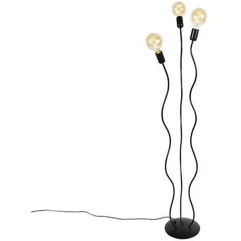QAZQA Lampadaire design noir 3 lumières – Wimme