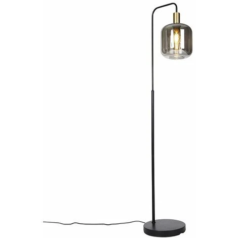 QAZQA Lampadaire design noir avec or avec verre fumé – Zuzanna