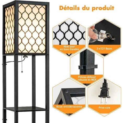 - ★MATÉRIAUX DE HAUTE QUALITÉ★Notre lampadaire sur pied salon est fabriqué avec des matériaux de haute qualité. L’étagère est fabriquée en MDF et en plastique, ce qui est structurellement stable, ne se déforme pas facilement, est solide et durable et a une longue durée de vie. L’abat-jour est fabriqué en tissu et en plastique et est facile à nettoyer.
