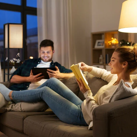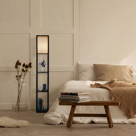 Ce lampadaire élégant apportera une lumière agréable à votre salon, votre chambre ou votre couloir. L’abat-jour en tissu beige est orné d’un motif décoratif en forme de losanges et permet de tamiser la lumière pour un éclairage plus doux. Les trois surfaces carrées situées sous l’abat-jour donnent également à cette lampe polyvalente la fonction d’étagère : déposez-y vos objets déco, cadres photo, livres, vases et bien plus encore. Un interrupteur à pied pratique à manier commande l’éclairage du lampadaire de salon.
