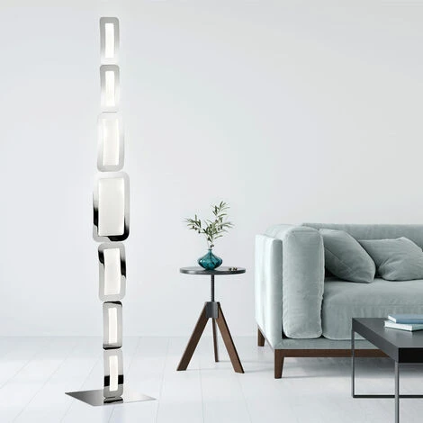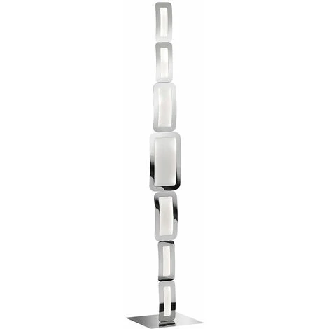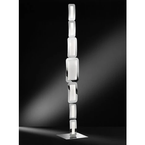 Description Ce lampadaire moderne en chrome se compose de plusieurs rectangles arrondis disposés les uns sur les autres.
